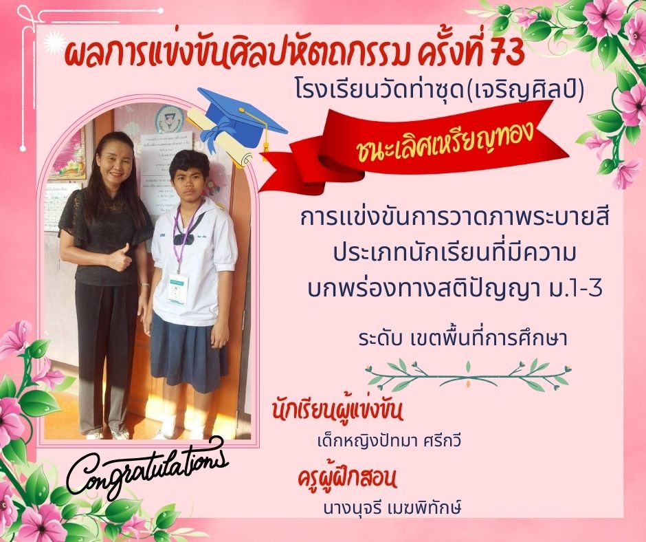 ชื่อผลงาน : รางวัลชนะเลิศ การแข่งขันการทำอาหาร ประเภทนักเรียนที่มีความบกพร่องทางการเรียนรู้ ป.1-ป.6 การแข่งขันศิลปหัตถกรรมนักเรียน ครั้งที่ 73 ปีการศึกษา 2568 ระดับเขตพื้นที่การศึกษา